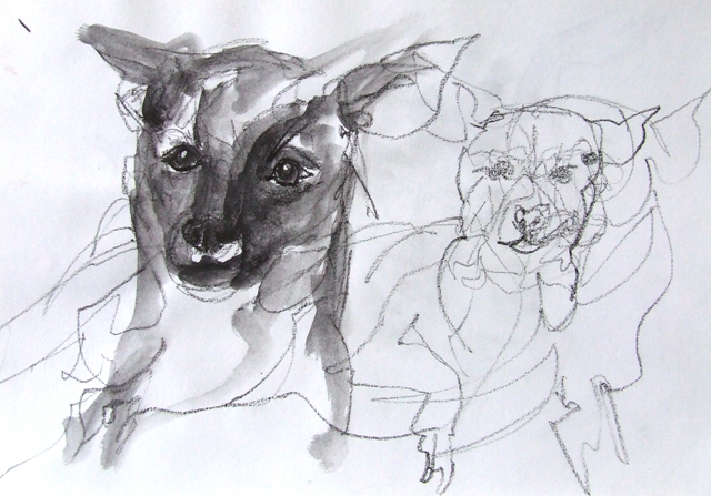 Here are some sketches I did of our family’s two dogs, they are tan and white Tenterfield terriers and they are sisters. My sister and I bought them because they were born the day after her birthday….and of course they were gorgeous as puppies and still are now, even as oldies!