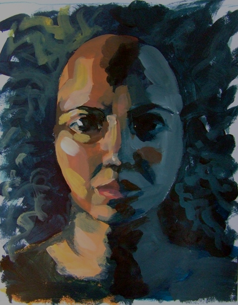 I took a series of photos in my bathroom because I loved the effect of coloured light: the blue curtain made one side quite dark and the other side was lit by natural light diffused through another room. This is my first attempt to paint something for this project and I am hoping my skills get better over the next twelve months!